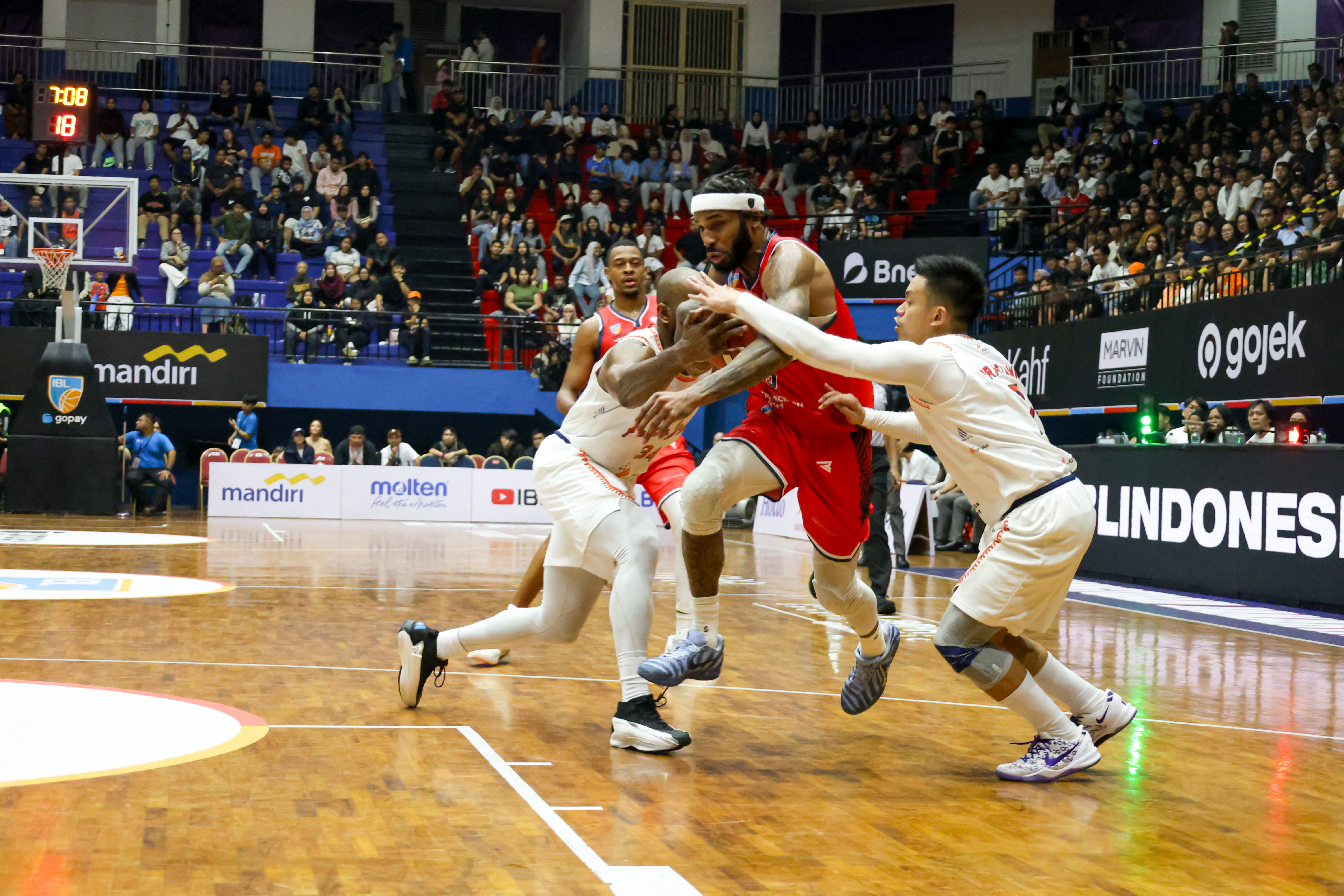 Duel bertajuk Derbi Jakarta tersebut pun berlangsung sengit sejak tip-off dengan diwarnai 12 lead changes hingga papan skor pada akhir kuater ketiga menunjukkan kedudukan imbang 48-48.